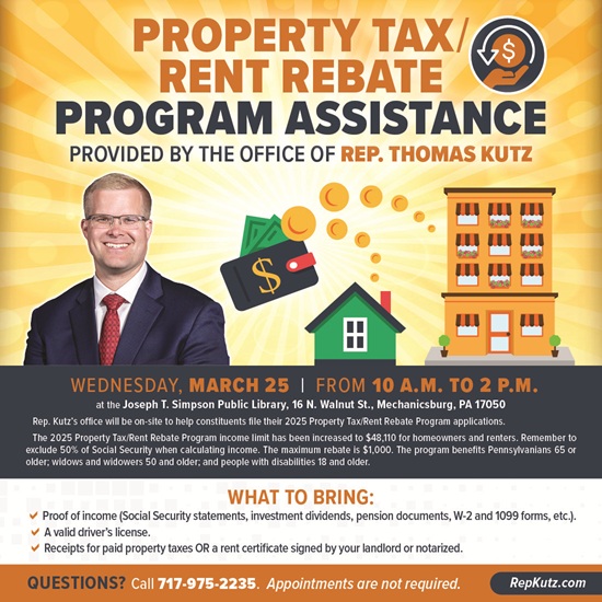 Residents of the 87th District are welcome to join us for a number of events my office will be hosting in the coming weeks. To RSVP for events (unless otherwise noted), please call my office at 717-975-2235 or visit RepKutz.com/Events.